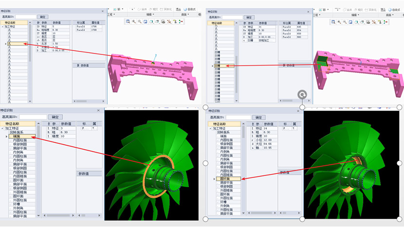 MBD全信息模型协同构建,完整识别模型PMI信息以及零件特征信息,支持越程槽、轴端面、孔、键槽、平面、轴台阶、外圆锥面、中心孔、凹槽、型腔、回转面系等四十余种特征的识别
