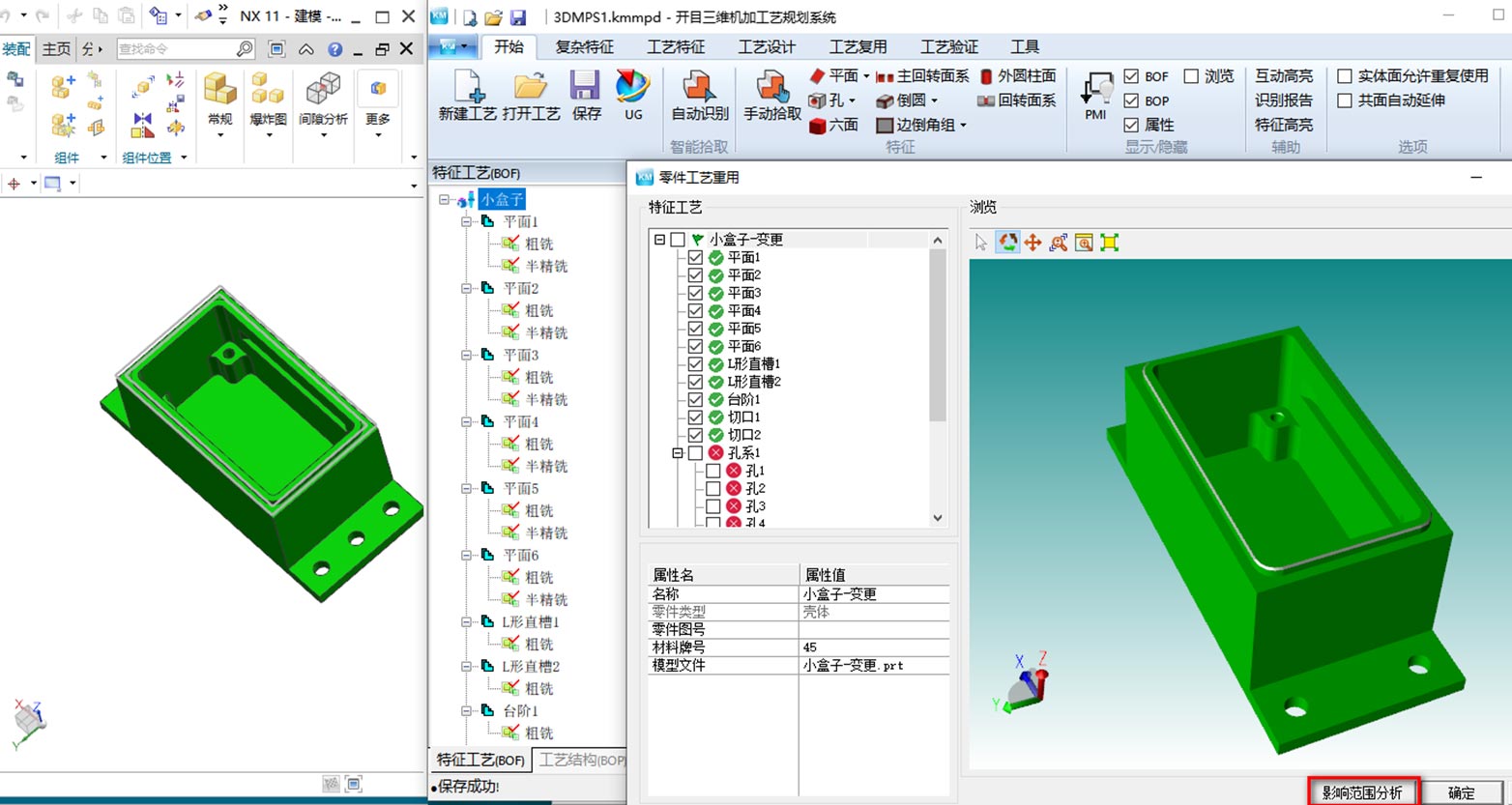 3DMPS是基于MBD技术,通过识别3D数模的制造特征及尺寸信息、公差和精糙度等信息,基于专家知识库智能推理,自动获取各制造特征的加工方法,生成零件的加工工艺过程、毛坯模型及各工序的中间模型,并支持加工过程仿真,工艺人员更准确、更高效地完成加工工艺设计,从而缩短生产准备周期,提高产品质量,降低研发成本,提高市场竞争力。