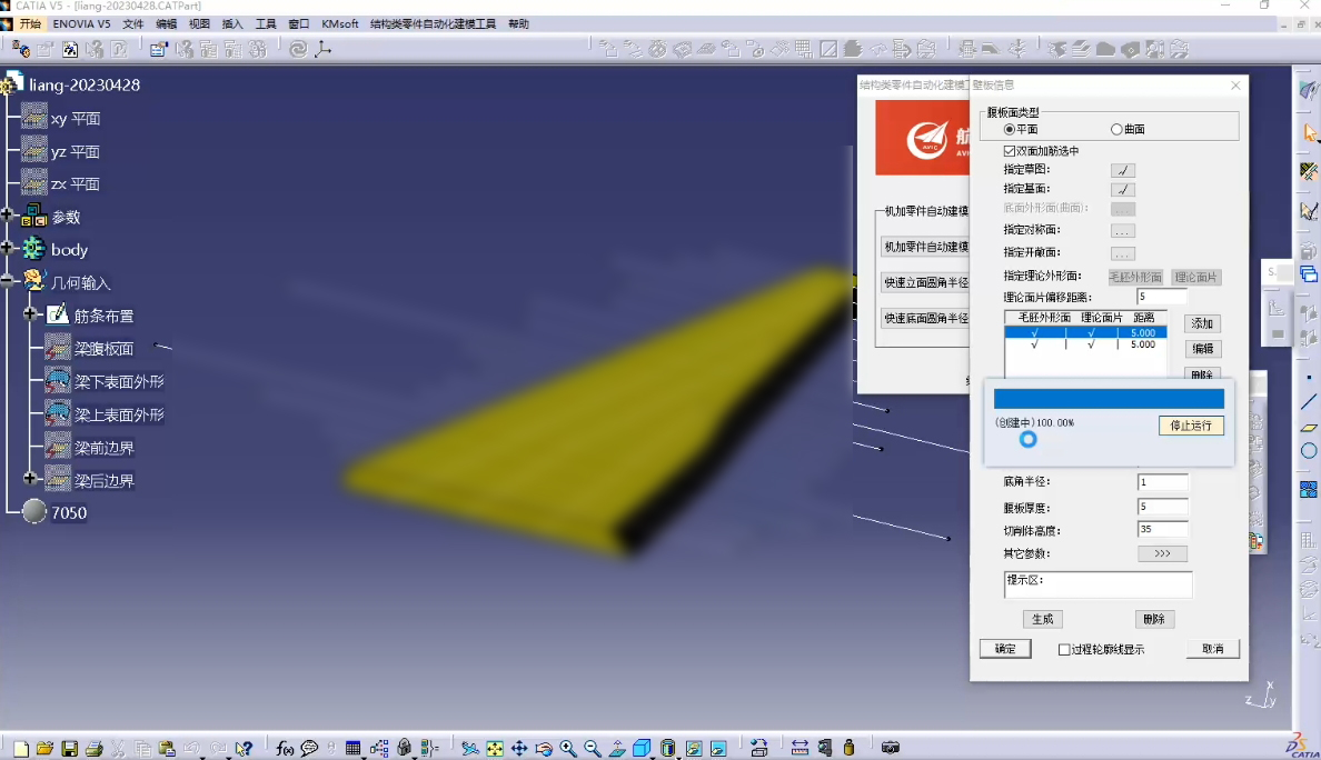 ◉ 基于3DDFM深度开发,自动生成草绘的零件实体模型、自动赋予零件模型应有属性和删除多余属性,实现设计工艺一体化融合